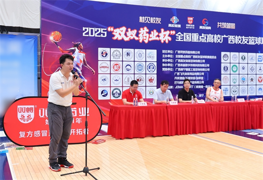 广西双蚁药业有限公司董事长王波作为冠名赞助商代表为开幕式致辞。他指出,双蚁药业长期坚守“为健康中国贡献力量”的企业使命,积极支持体育事业发展。本次冠名赞助高校校友篮球联赛,是企业践行社会责任、传递健康生活理念的重要举措。未来,双蚁药业将持续探索体育营销与品牌传播的深度融合,以更加多元的方式支持群众体育,“让运动为生命增效,让健康为生活护航”,致力于将企业打造成为世界壮医药企业引领者。