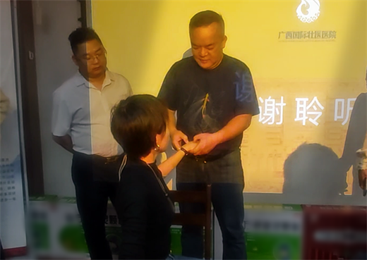 梁树勇教授现场给腰痛嘉宾体验壮医经筋疗法