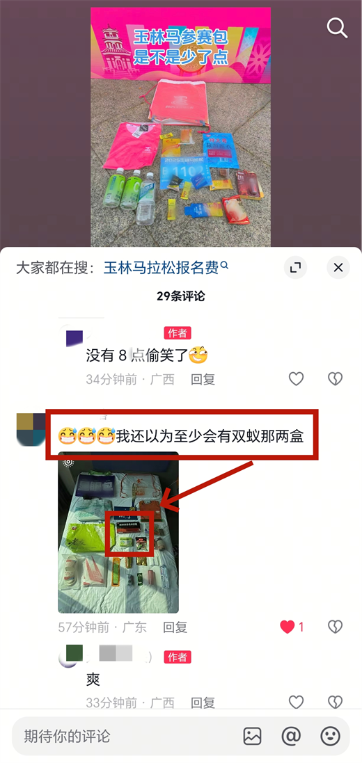 刚刚落幕的玉林马拉松,不少跑友领完参赛包后,在社交平台晒图时,发出了这样的疑问:“怎么没看到双蚁的产品?”