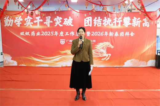 马踏祥来启新岁,凝心聚力赴华章!在新春佳节即将来临之际,双蚁药业2025年度工作总结暨2026年新春团拜会在公司外包车间隆重举行。全体双蚁人欢聚一堂、共叙情谊,一同回望2025年的耕耘与收获、挑战与成长,总结过往经验、谋划未来蓝图,共庆团圆祥和、喜乐安康的新春佳节,共赴属于双蚁药业的全新征程!