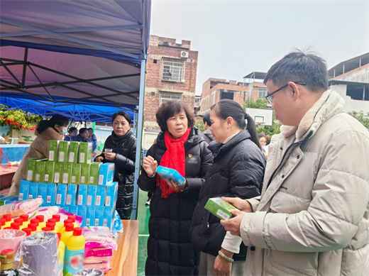 活动现场暖意融融、年味渐浓,书写对联、剪窗花、游戏互动的摊位前人头攒动,义诊、理发等便民服务有序开展,欢声笑语间满是邻里相伴的温情。双蚁药业党支部书记、副总经理曾秋菊带领支部党员志愿者,早早布置好服务点位,醒目的药品捐赠展示区前,一件件复方感冒灵颗粒、复方金银花颗粒整齐摆放,不仅承载着企业的爱心,更凝聚着党支部对群众健康的深切关怀。