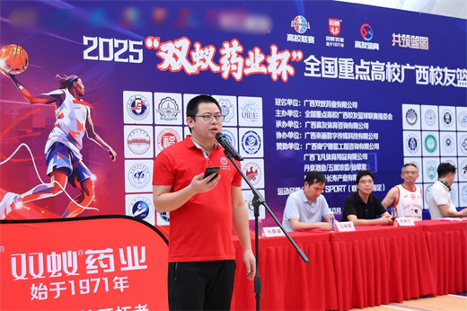 广西双蚁药业有限公司董事长王波作为冠名赞助商代表为开幕式致辞。他指出,双蚁药业长期坚守“为健康中国贡献力量”的企业使命,积极支持体育事业发展。本次冠名赞助高校校友篮球联赛,是企业践行社会责任、传递健康生活理念的重要举措。未来,双蚁药业将持续探索体育营销与品牌传播的深度融合,以更加多元的方式支持群众体育,“让运动为生命增效,让健康为生活护航”,致力于将企业打造成为世界壮医药企业引领者。