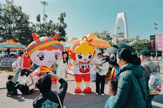 本次活动中,双蚁药业在赛事领物区设立的展位格外引人注目,成为跑友们聚集的热门打卡点。展位前,“中药材辨识”“分享集赞赢好礼”等互动环节创意满满,吸引大量跑友驻足参与,现场气氛持续高涨。而可爱萌动的吉祥物“壮壮”与“美美”更是人气焦点,引得跑友纷纷合影留念,欢声笑语贯穿始终。