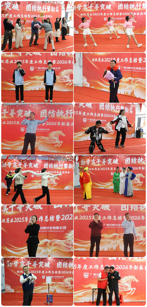 马踏祥来启新岁,凝心聚力赴华章!在新春佳节即将来临之际,双蚁药业2025年度工作总结暨2026年新春团拜会在公司外包车间隆重举行。全体双蚁人欢聚一堂、共叙情谊,一同回望2025年的耕耘与收获、挑战与成长,总结过往经验、谋划未来蓝图,共庆团圆祥和、喜乐安康的新春佳节,共赴属于双蚁药业的全新征程!