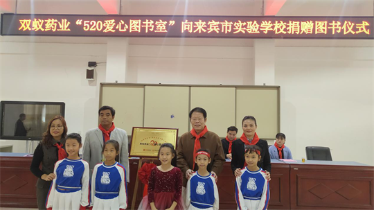 为“倡导全民阅读,共建书香校园”,提高青少年阅读质量,双蚁药业不忘初心,积极响应团中央和国家新闻出版署的号召,向来宾市实验学校等10所中小学校捐赠20万码洋图书。